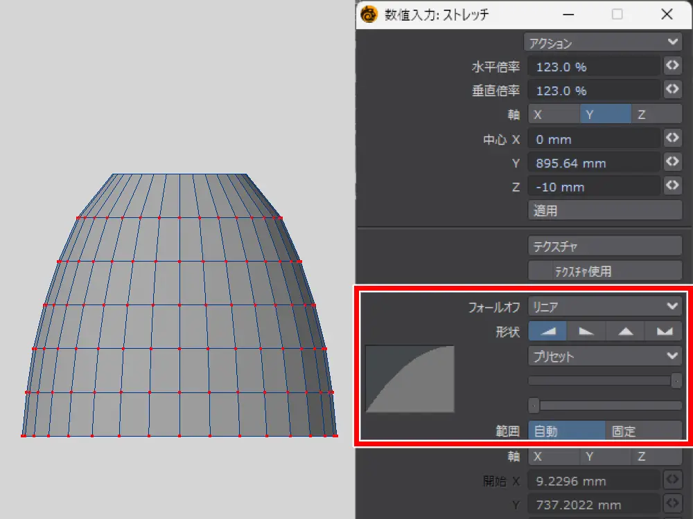 上下面も少し曲面が付いた状態になるので、ポイントを水平に整列