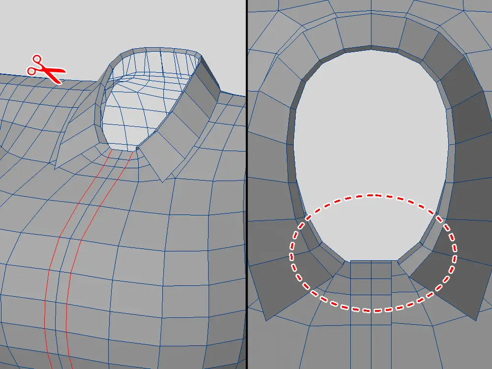 | ローポリから作る | 作れる服の幅が広い 細分化時にキレイな曲面ができる | 素体が貫通しやすい ぴっちり系が作りにくい |