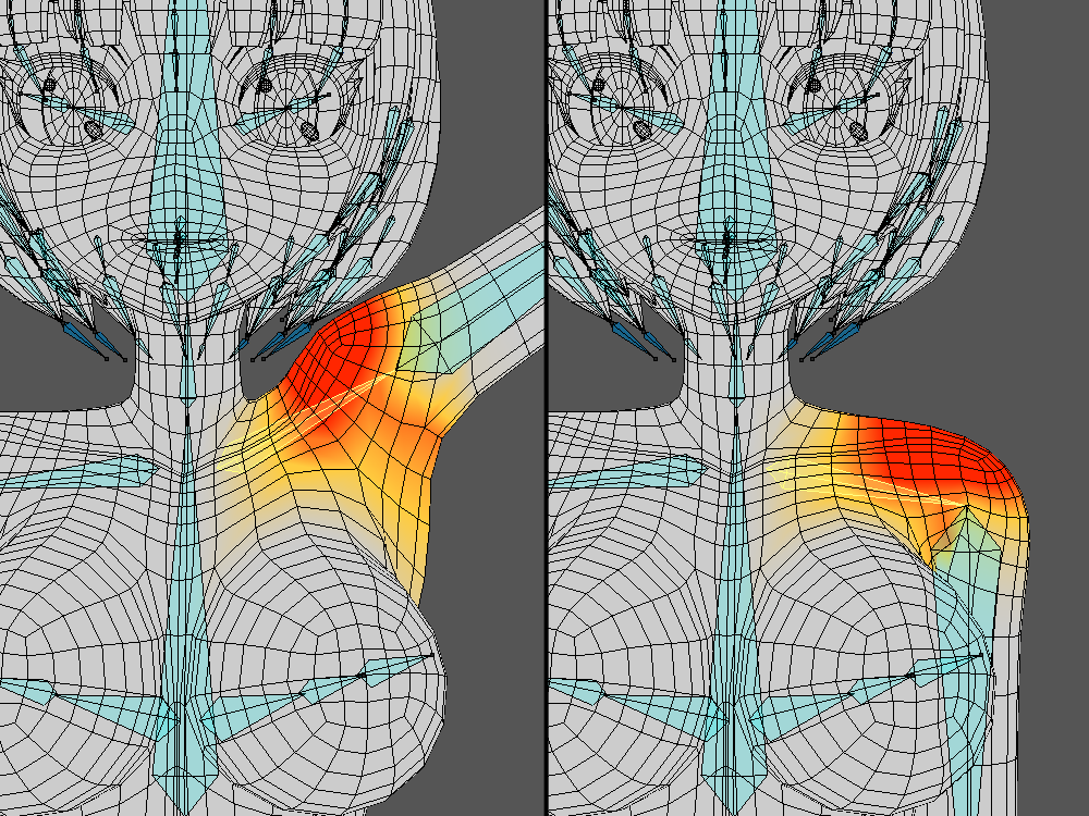 完璧なウェイトを目指す必要はないと思いますが、ここでしっかり調整してイメージ通りの変形になるようにしておかないと、後々痛い目に会います