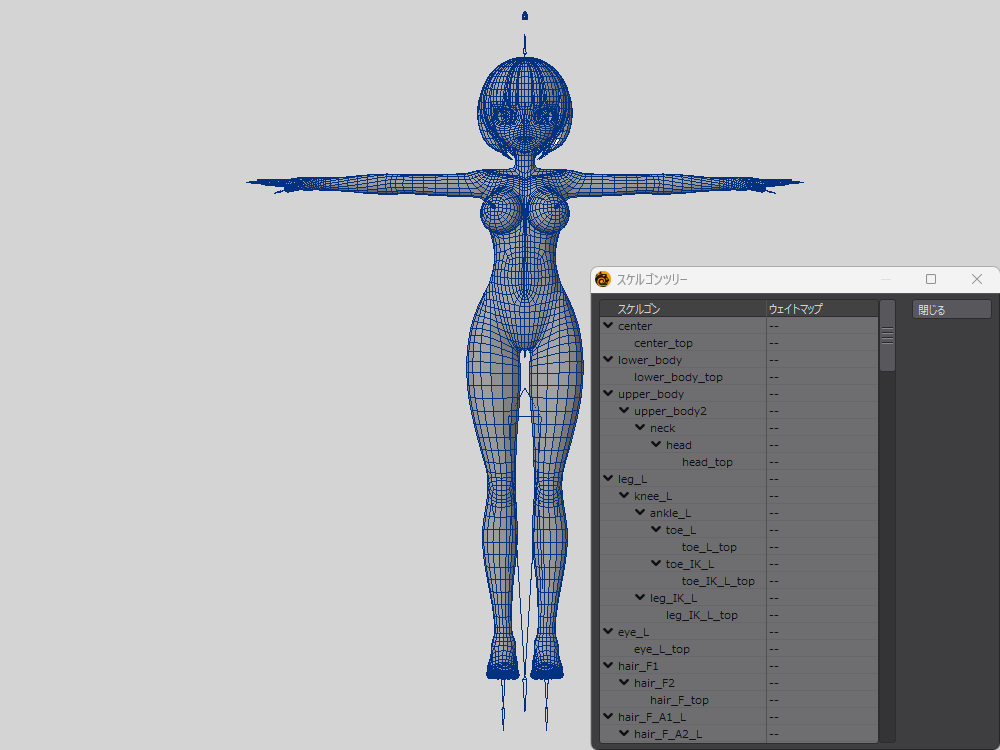 正確にはモデラーではスケルゴンという疑似ボーン扱いですが、ここでは基本的にボーンと呼んで統一します